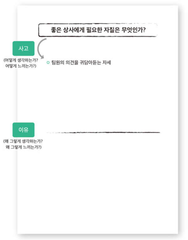 3. 종이를 위아래로 나눠 각각 ‘사고’와 ‘이유’라고 쓴다.