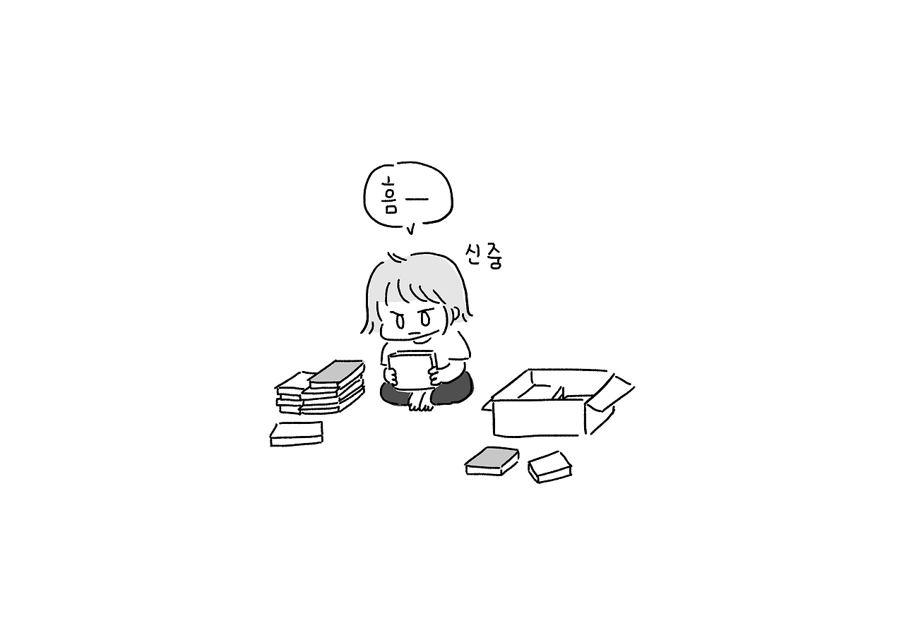 책을 정리하려고 마음먹은 뒤 가장 먼저 생각한 방법은 기부처를 알아보는 것이었다. 지역 도서관부터 작은 중고 서점까지 생각해 봤지만 이 많은 책을 가지고 갈 만한 방법이 떠오르질 않았다. 게다가 상태가 안 좋은 책들도 꽤 되어서, 기부하기엔 좀 그렇고. 깊은 고민에 빠진 나에게 친구 ’예‘가 얼마 전 중고 책 사이트에 스무 권의 책을 팔았단 얘길 전해왔다. 역시 그게 가장 빠르고 깔끔한 정리가 되려나. 이거 얼마 되지도 않을 거 같긴 한데···.