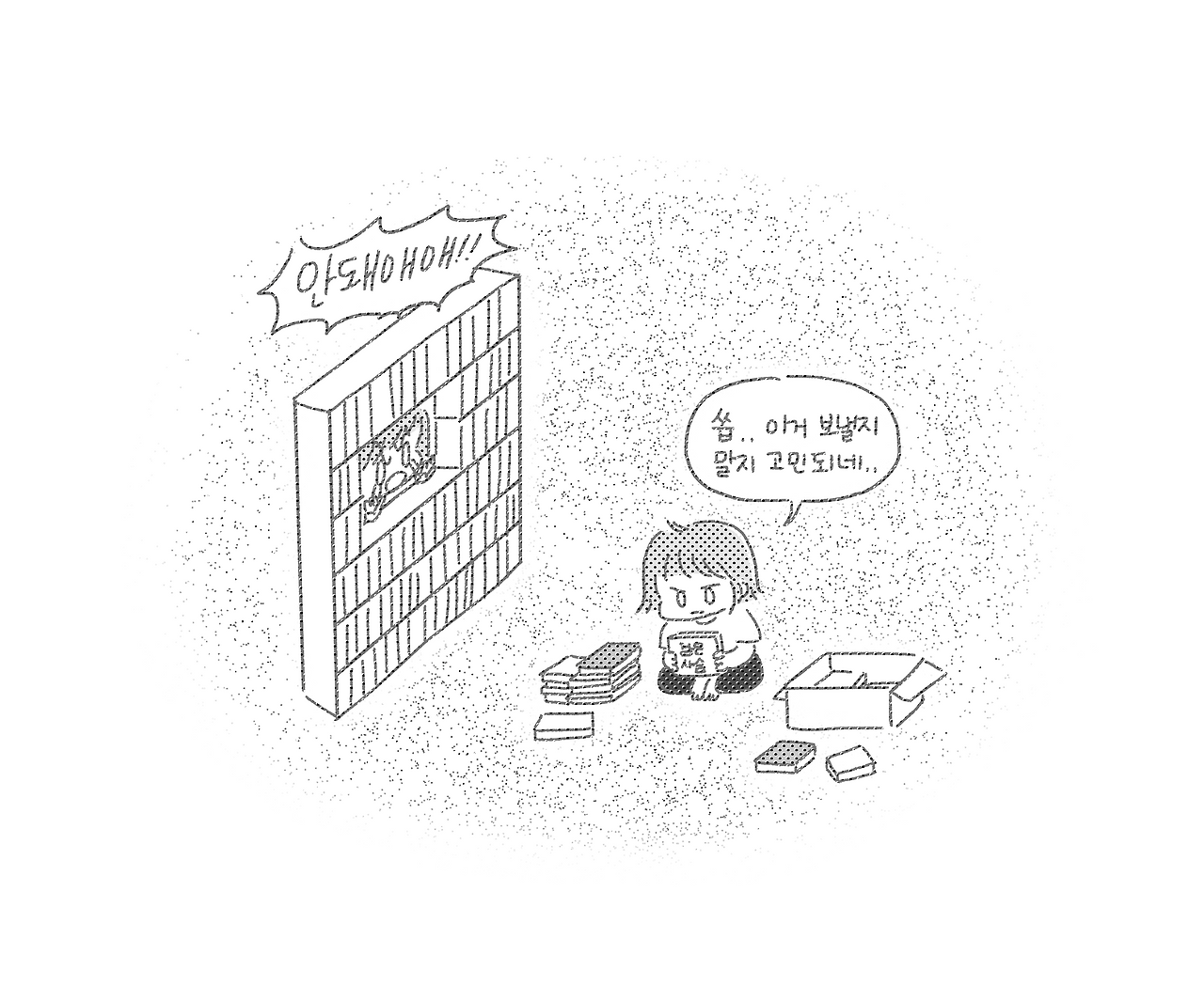 “(과거의 나) 씁. 이거 보낼지 말지 고민되네. 다 읽기도 했고, 책도 꽤 멀쩡한데 그냥 보낼까?”