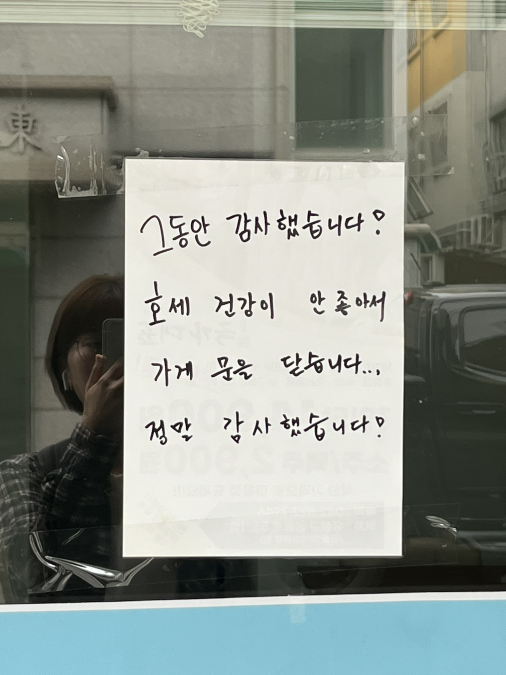 이상하다. 전 날 마감시간까지 함께 있었는데, 갑자기 문을 닫았다. 문을 닫자마자 가게 앞에 광고지가 붙었다. 커다란 세네 장의 임대 광고 현수막들이다. 결국 다른 카페에 갔다.
