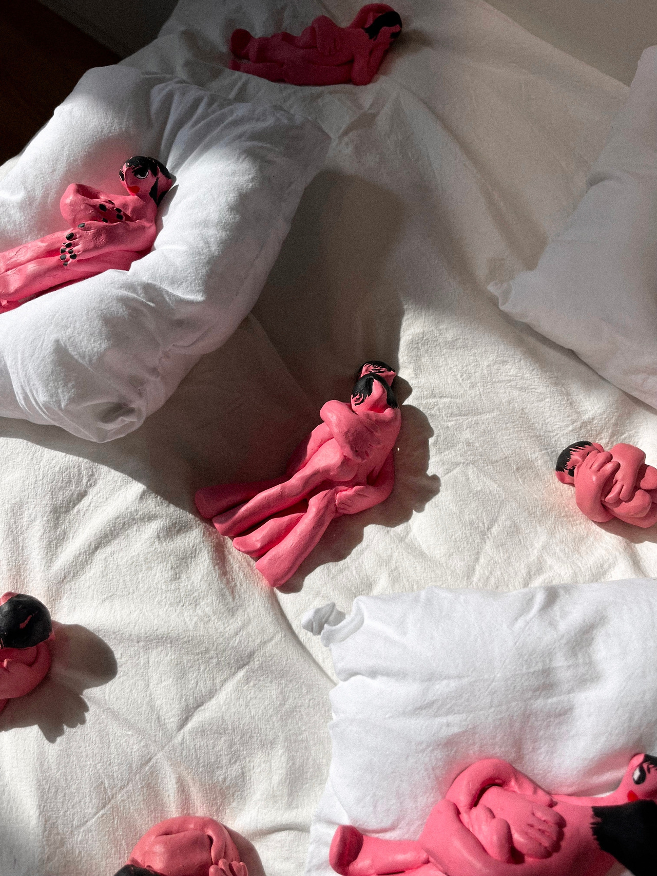 지나가던 길에 잠깐 본 전시라 미처 제목과 작가를 메모하지 못했다. 내 멋대로 이 작품의 이름을 [오후 4시 30분]으로 지었다. 오후 4시 30분의 해는 침대에 그림자를 만든다. 침대 위에 머무는 몸은 햇빛과 그림자 사이를 넘나들 수 있다. 해가 비추는 곳에 머무는 몸은 따뜻하다. 한편 그림자에 숨은 몸은 고요하다. 빛과 그림자 사이를 오가는 몸은 침대 위의 모든 경계를 허문다.