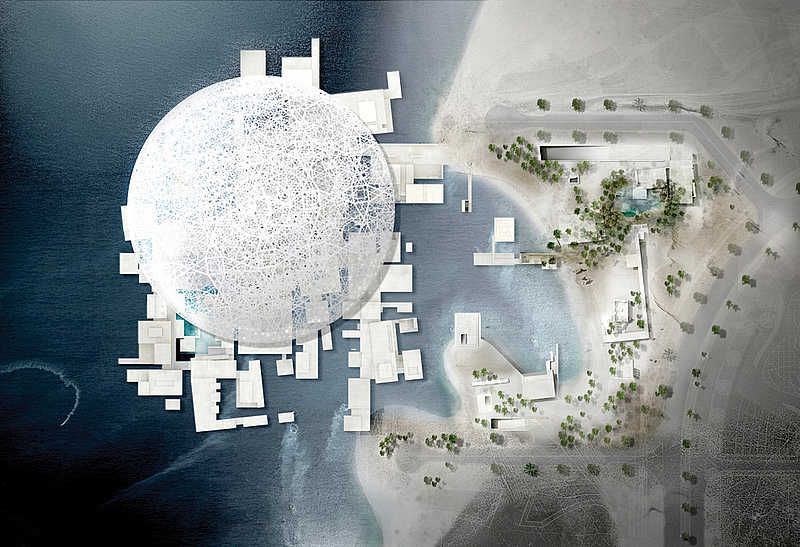 루브르 아부다비관은 장 누벨의 여러 작품 중에서도 유독 '기후에 대처하는 건축가의 태도'를 잘 표현했다. 모래밖에 없는 사막 섬 사디야트(Saadiyat)에서 뜨거운 태양을 막아 사람이 살기 좋은 한가로운 그늘을 만들어 주었다. 누구나 다 할 수 있는 생각이겠거니 가볍게 보기에는 그가 그늘을 만들기 위해 어떤 노력을 했는지 알아차릴 필요가 있다. 뒤죽박죽 특별히 나타내는 것이 없는 것 같은 무늬는 알고 보면 아라베스크 문양에서 영감을 받았다. 또한, 하나의 거대한 모임공간을 만들기 위해 최소한의 기둥을 사용해 돔 구조를 지탱하는데 내부의 사용자들은 공중에 떠있는 것 같다는 착각을 들게 할 정도다.