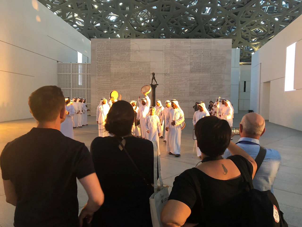 내가 갔을 땐, 미술관 내부에서 전통예술 공연이 한창이었다. 아랍의 음악을 라이브로 감상할 수 있는 기회는 흔치 않은데 운이 좋았다. 마침 해가 기울면서 백색의 공간이 노오란 개나리의 색이 되었다. 사람들은 노란 햇병아리가 된 상태에서 무대와 관객석의 구분이 없는 공간에서 공연을 즐겼다. 나는 당시 파병 중이던 군인으로서 거친 배 생활로 감성이 많이 메말라 있었는데 번지수를 제대로 찾아왔다는 생각을 했다.