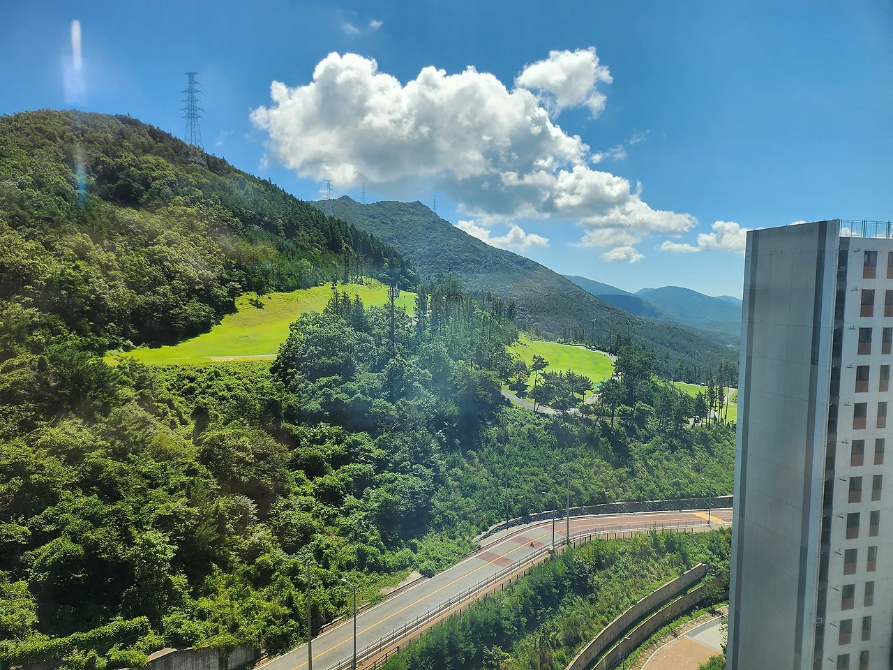 산 한가운데, 엑셀을 꾸준히 밟아 올라가야 도착하는 이곳은 생각보다…. 아니, 많이 화려했다. 헬스장, 대중목욕탕, 탁구장, 골프연습장, 당구장, 도서관, 독서실, 필라테스, 심지어 노래방까지. 아파트 바로 옆 상가에는 편의점과 카페, 피자집, 치킨집, 국밥집, 고기집이 줄줄이 붙어 있었다. 이쯤 되면 ‘산속 유배생활’이 아니라 ‘산속 리조트 장기 투숙’ 아닌가?
