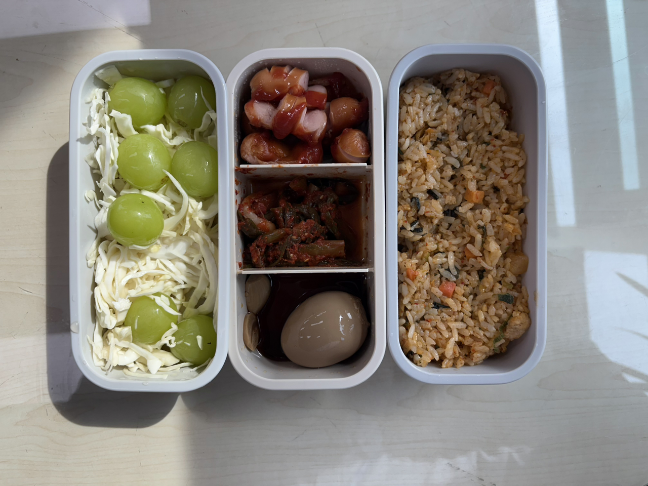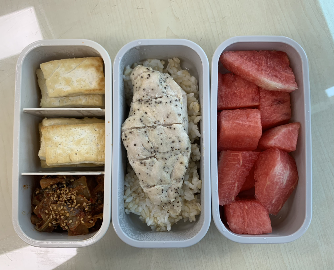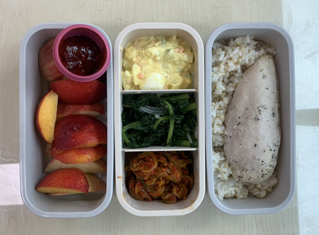 앞서 언급했듯이 누구 덕분에 맛있는 음식을 매일 실컷 먹었더니 사랑이 잔뜩 찌고 말았다. (내가 밥을 한 공기만 먹으면 어디 아프냐고 물어본다.) 나름 날렵하고 멋진 남편이었는데, 요즘 부쩍 아내가 '물론 여전히 잘생겼지만, 그래도 건강을 위해 살을 좀 빼야 하지 않겠냐'라고 스리슬쩍 이야기한다. (당신이 먹였잖아.) 그래서 다시 점심에 도시락을 열심히 싸고 있다. 물론 아내가 해주는 게 대부분이지만. 이번엔 며칠이나 갈까 나의 다이어트.