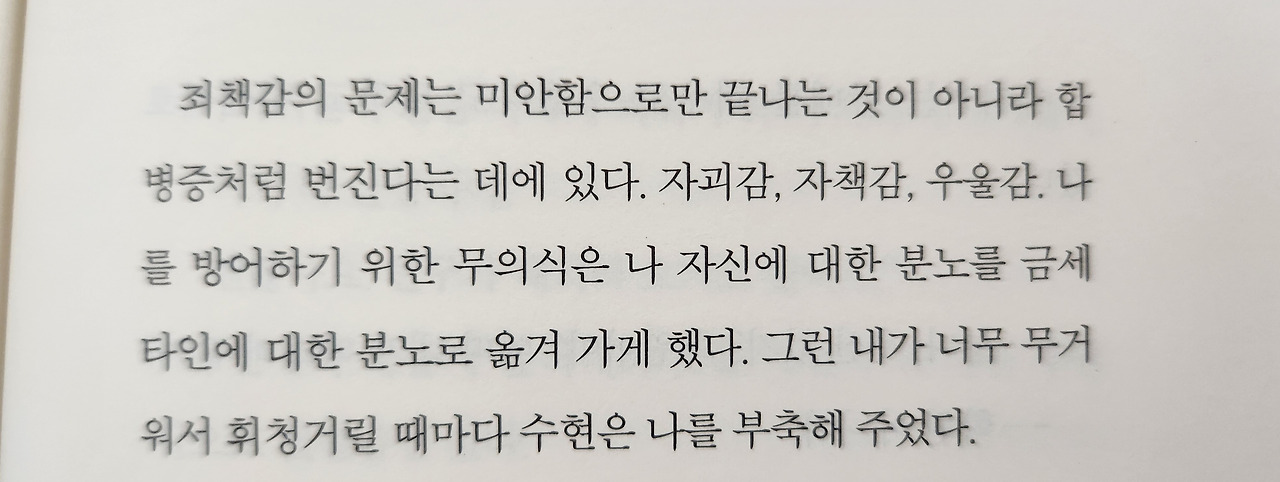유원을 둘러싸고 있는 언니, 동생, 엄마, 아저씨 등의 인물과의 대화와 행동을 통해서 오늘을 힘겹게 버티고 살아가는 유원과 같은 내면을 가진 나에게 깊은 통찰을 선사해 주었다. 천천히 책을 읽으며 책 속에 자연스럽게 빠져들었다. 책 속에서 유원의 삶과 나의 삶을 포개는 시간이었다. 꼭 한번 읽어 보기를 권한다. 아주 잔잔한 이야기 속에서 진주를 발견할 수 있으리라.