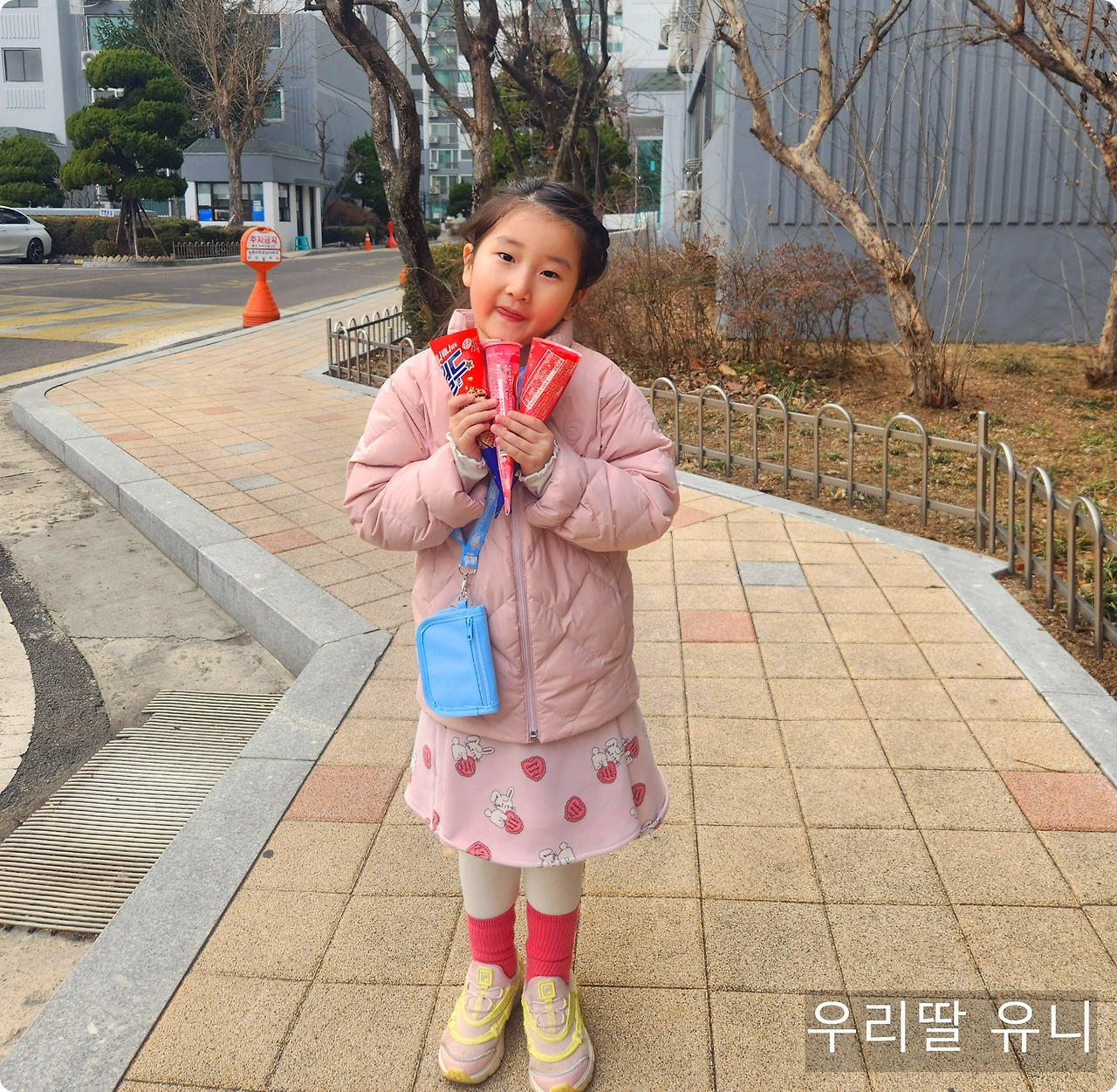 5시. 유치원 하원시간. 유니의 얼굴은 싱글벙글이다.