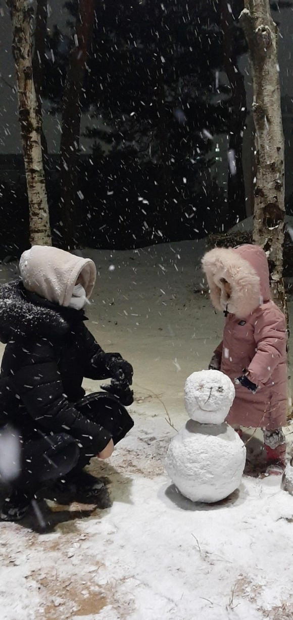 새하얀 눈이, 추위와 코로나19로 움츠려 있던 우리 가족의 마음에 따뜻한 추억을 선물해 주었다.