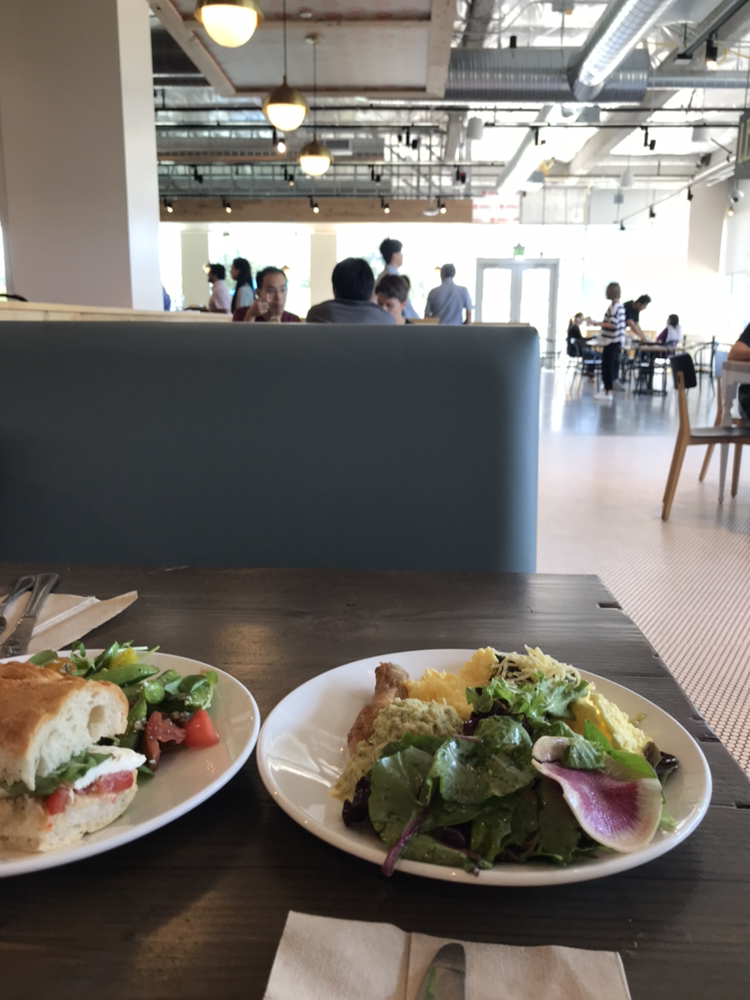 실리콘 밸리에서 즐길 수 있는 작은 즐거움 중 하나는 지인들만 있다면 여러 회사의 점심식사를 먹어볼 수 있다는 것인데 우리는 그래서 가끔 남편의 회사에서 점심을 먹는다. 가끔이라고 해봤자 두 달에 한 번 쯤이지만 그래도 평소엔 독박육아에다가 코로먹는지 입으로 먹는지 모르겠는 아기와 함께하는 점심시간에 남편의 도움아래에서 내가 만들지 않은 음식을 먹을 수 있다는 것이 참 큰 리프레시가 된다. 그렇게 점심을 먹고 남편 회사의 카페에서 커피랑 디저트까지 테이크아웃해서 딱 그렇게 집에 도착하면 얼마나 하루를 넘길 힘이 나는지! 불끈불끈!