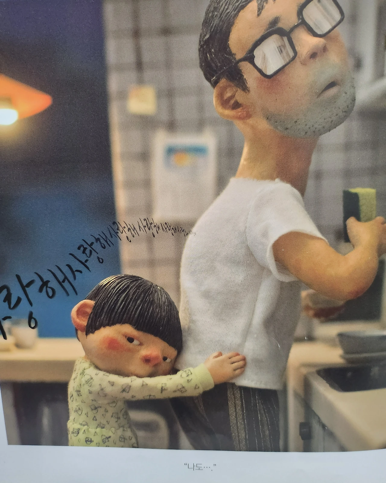 방을 나선 동동이는 아빠를 살포시 껴안으며 나지막한 목소리로 말합니다.