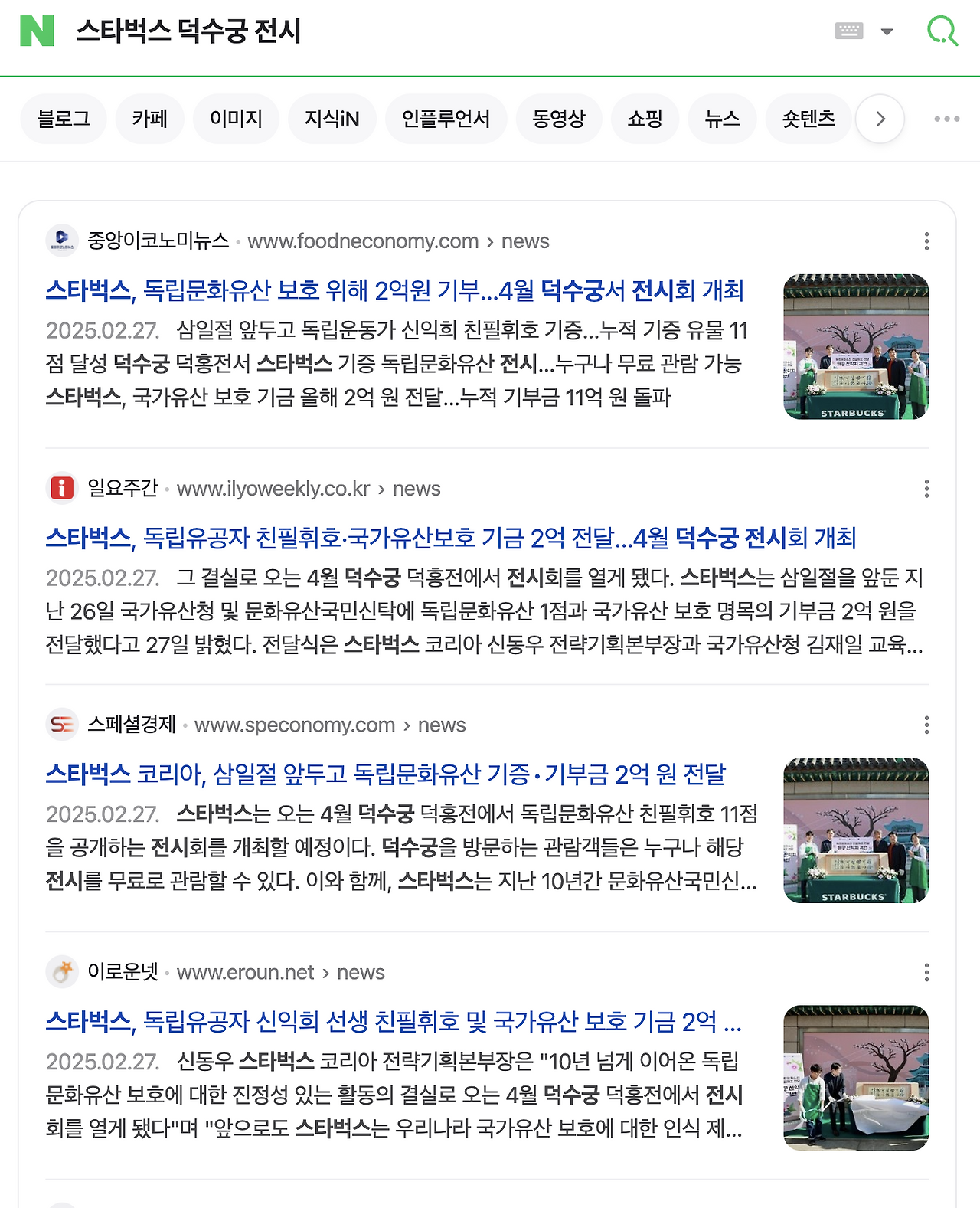 검색 내용을 좀더 들여다보니 스타벅스가 하는 독립문화유산 보호 활동이 이번이 처음이 아니란 것도 알게 되었다. 무려 2015년부터 십년 째 꾸준히 이어오고 있었다. 2015년이면 내가 입사해서 회사 생활에 찌들어 스타벅스 커피를 에너지 드링크 삼아 마시기 시작할 때였다.