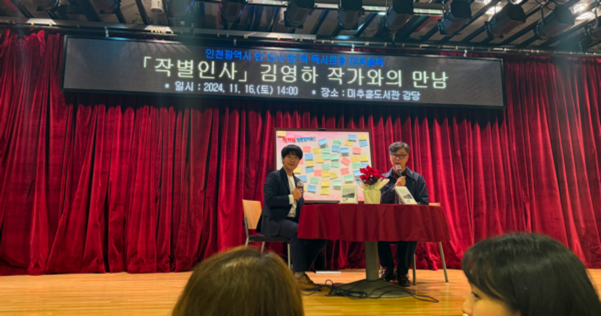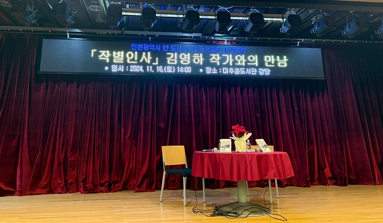 이번 북토크는 2024년 인천 미추홀북으로 선정된 <작별인사>라는 소설을 주제로 기획되었지만 참가자들은 '김영하'라는 사람을 만나고 그의 이야기를 들으러 온 것 같았다.(미추홀북은 인천시에서 한 해 한 권 읽기를 목표로 시민들이 직접 올해의 책을 정하는 행사다) 책 읽는 사람들에겐 인기 많은 연예인인 것 같은 느낌?