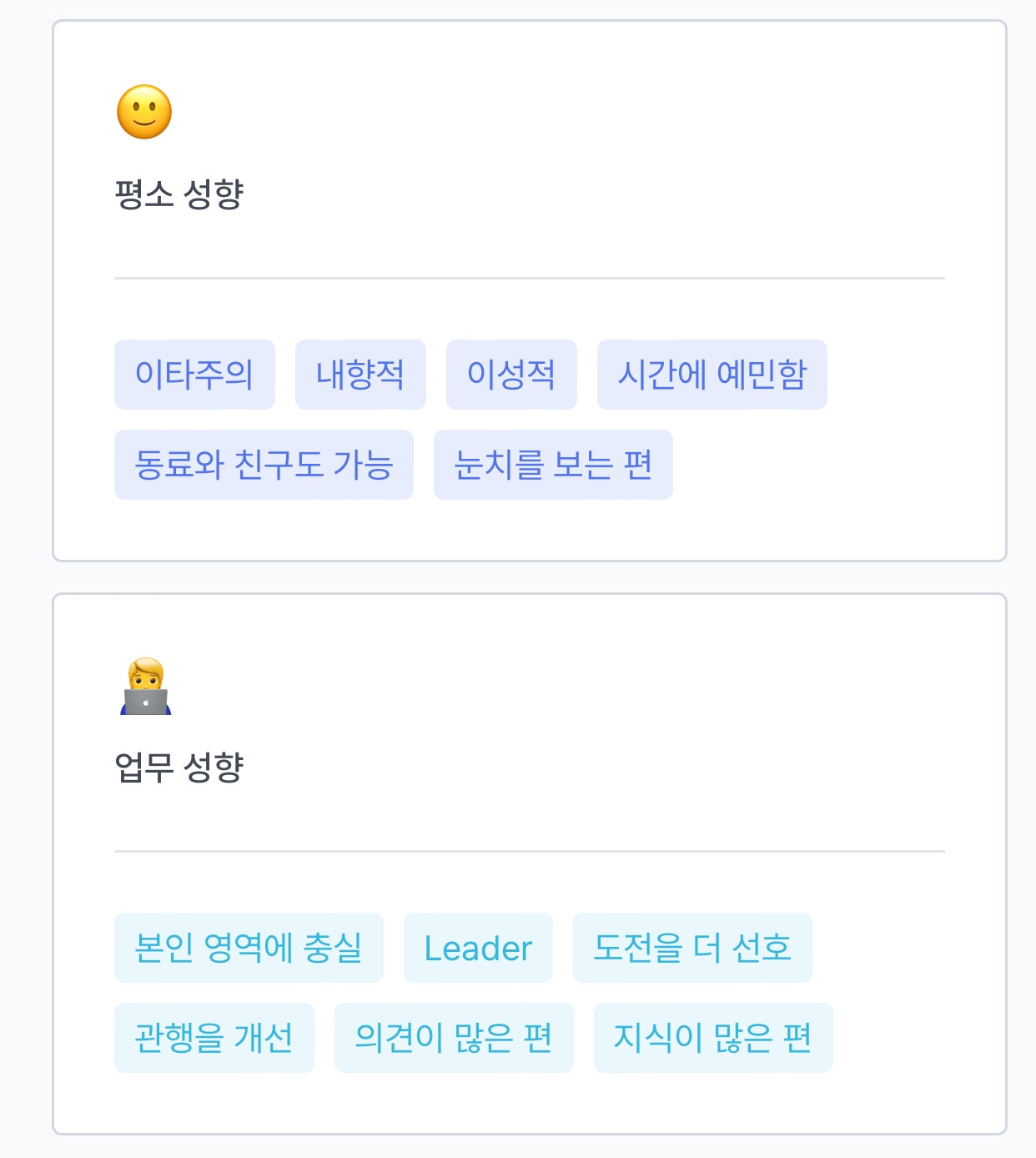 이번에 경험하는 레퍼런스 체크는 보편적인 수단인 “전화 통화“가 아닌 플랫폼 서비스를 통해 진행하게 되어서 내가 요청한 각 회사의 임원, 상사, 동료 등이 남긴 나에 대한 평가와 느낀점, 장/단점을 시각적으로 확인할 수 있었고