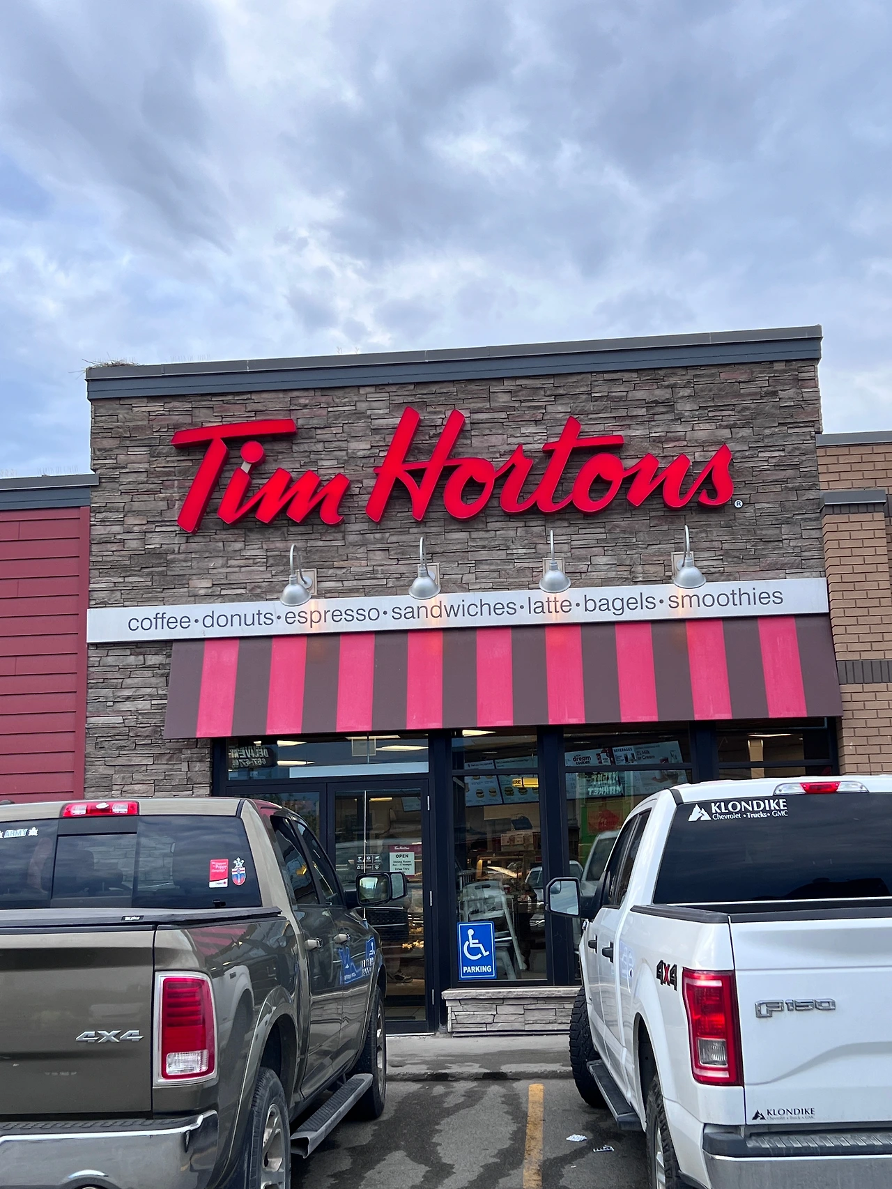 가는 길에 커피 & 당 충전을 위해 캐나다에서 제일 유명하다는 팀홀튼에 들렀다. 처음으로 방문하는 팀홀튼 매장이었다. 이후에 거의 매일 가게 될 줄을 몰랐지만..