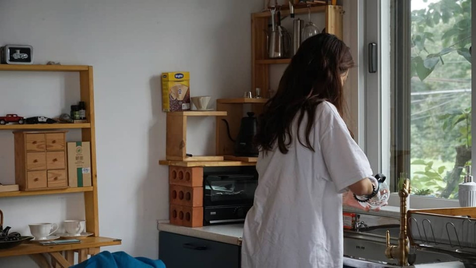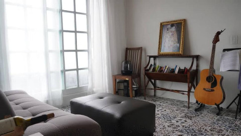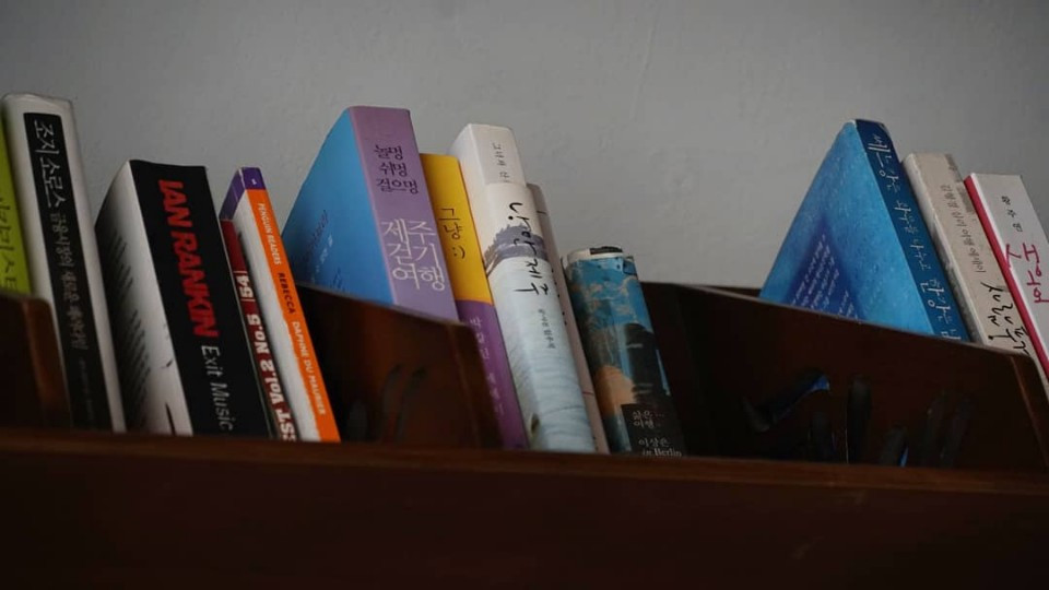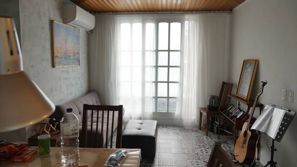 우리는 조개를 실컷 먹고도, 편의점에서 아이스크림과 주전부리 한 다발을 사들고 숙소로 향했다. 숙소는 강릉 시내를 지나 조용한 주택가에 위치했다. 비상용으로 쓰일 법한 오래된 시멘트 계단을 오르면 2층 독채로 이어지는 구조였다. 건축가가 사는 집이라 그런지 따뜻한 조명과 감각적인 타일들, 책과 커피로 장식된 소품, 통기타가 있는 아늑한 공간이었다.