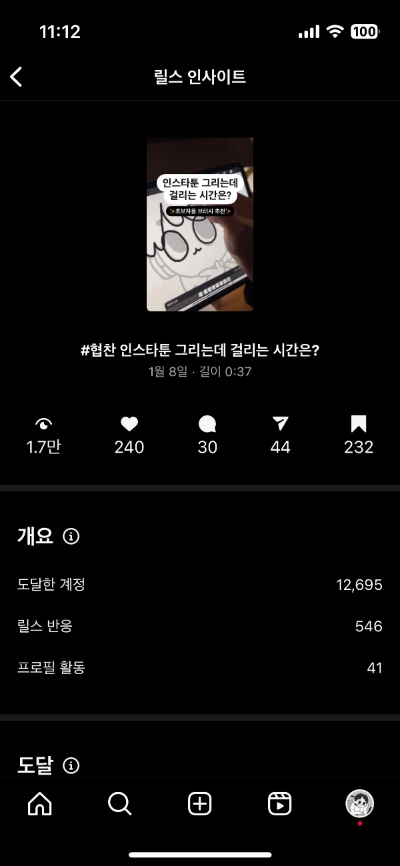 하이아웃풋클럽 멤버분과 첫 콘텐츠 협업을 진행하며 릴스에 도전해보기도 했다. 당시에는 지금보다 내 계정 팔로워가 절반밖에 되지 않았을 때였는데도, 해당 계정에서 다른 분들과 진행한 협업 릴스들 평균보다 5배 이상 좋은 인사이트를 뽑아내기도 했다.