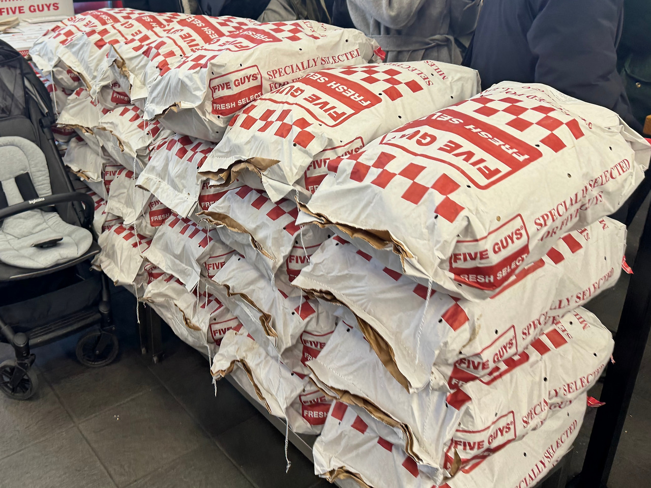 1. 매년 우리 회사 시무식에서는 팀별 영상을 찍어 어워드를 개최하고, 투표를 통해 1위~3위까지 회사에서 회식비를 지원해 준다. 올해 투혼의 연기를 불싸지른 우리 팀은 2위를 했고, 상금으로 20만 원을 받아 내 돈 내고 가기는 아까운 곳 두 곳을 정해 가기로 했다. 첫 번째는 마키노차야, 두 번째는 오늘 방문한 파이브가이즈다.