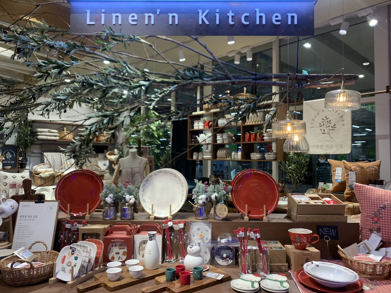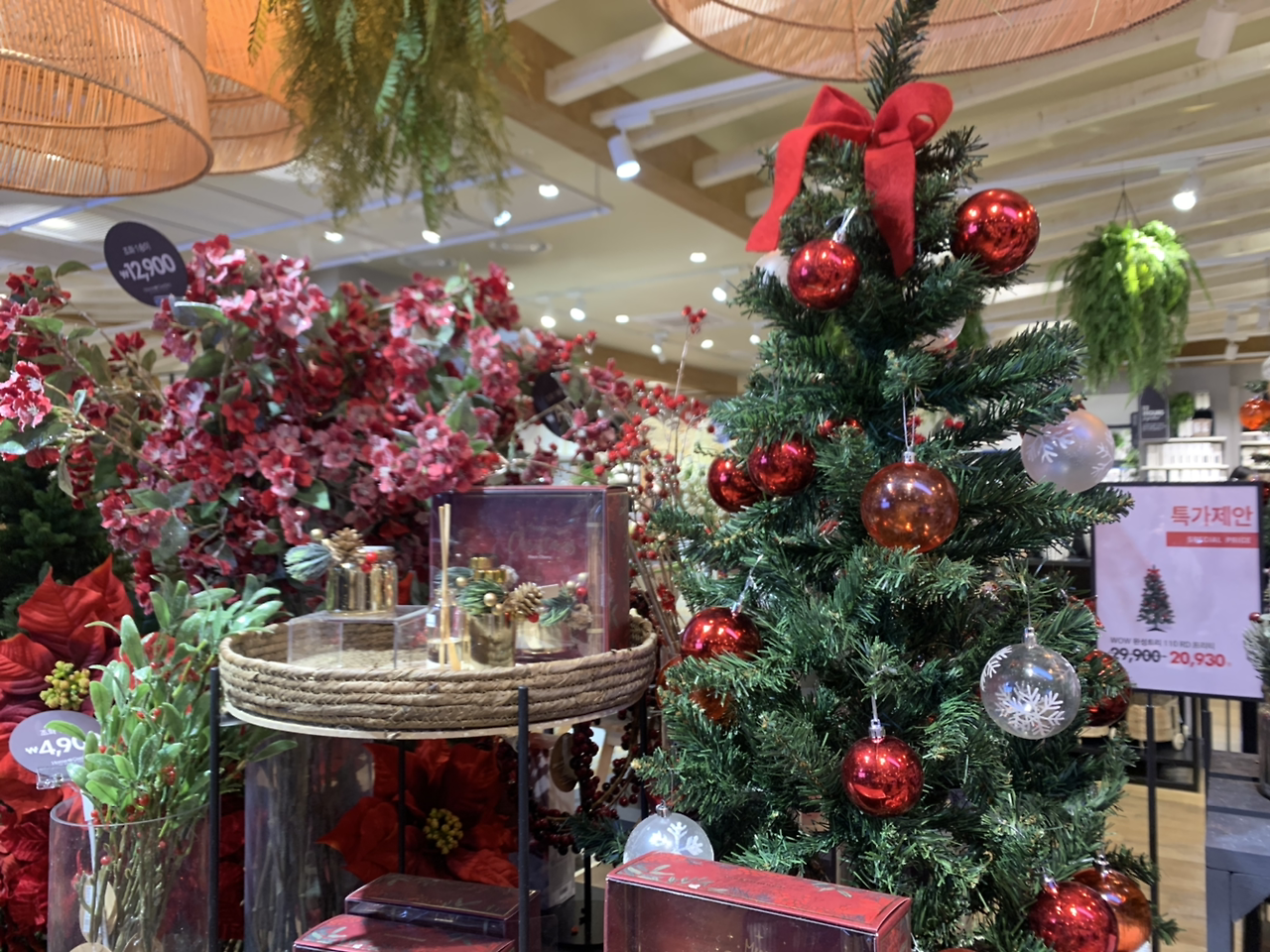 집안을 장식하고 홈파티를 할 수 있는 오너먼트와 식기들이 아주 예쁘게 디피되어 있었다. 사진을 바라보며 크리스마스 저녁을 상상한다. 텔레비전에는 크리스마스를 배경으로 한 외화물이 방영된다. 파운드 케이크를 빵칼로 정교하게 잘라 예쁜 접시 위에 담고, 목재나 은재 포크로 먹기 좋게 떠서 오물오물 먹는다. 쇼파 위에 놓인 알록달록한 패브릭 천을 어깨에 두르고 따듯한 뱅쇼를 홀짝인다. 가끔 창밖을 내다보면, 하얀 눈이 보슬보슬 내려오는 광경이 보인다. 살짝 서늘한 기운에 어깨를 움츠리며 어깨에 두른 담요를 매만진다.