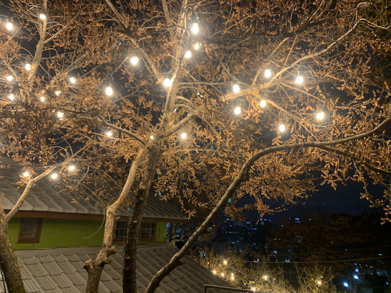 고요한 어둠 속에 불을 밝히는 커피숍 앞 나무에는 동글동글한 전등이 달려 있다. 서늘한 겨울 공기에 노란색 불을 밝히는 따듯한 조명. 잔잔하게 울려퍼지는 카페의 음악이 깊어가는 겨울임을 알게 한다.