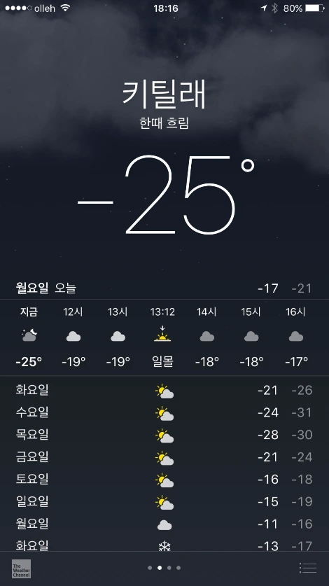 가기로 결정을 내리고 나서 가장 고민되는 것은 준비물이었습니다. 아이폰 날씨 앱을 통해서 핀란드의 날씨를 확인해보니 현지 기온이 정말 장난이 아니었습니다. 제가 평생 보지 못한 온도가 떠 있더군요.