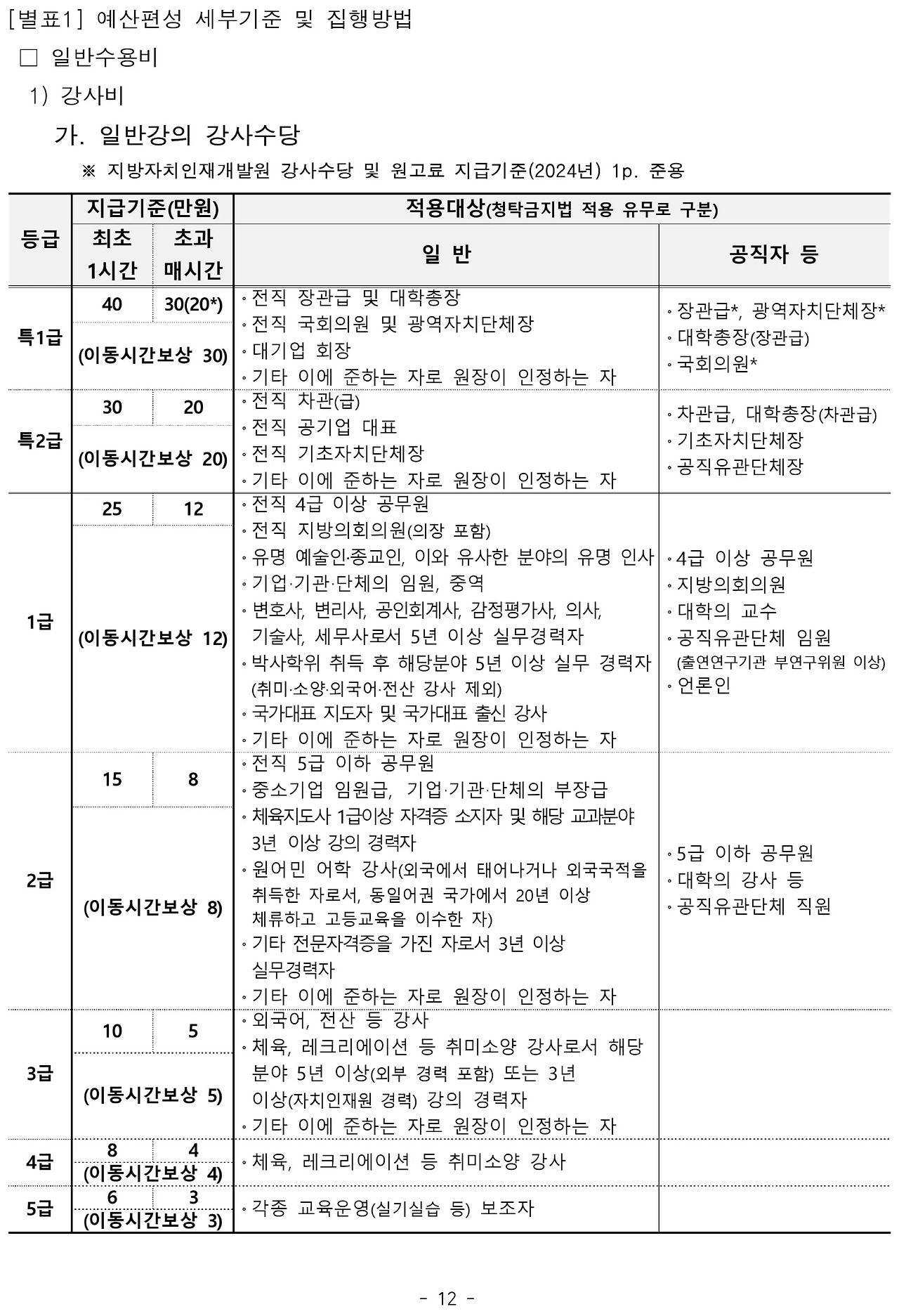 (행정안전부) 지방자치 인재개발원 강사수당 및 원고료 지급기준