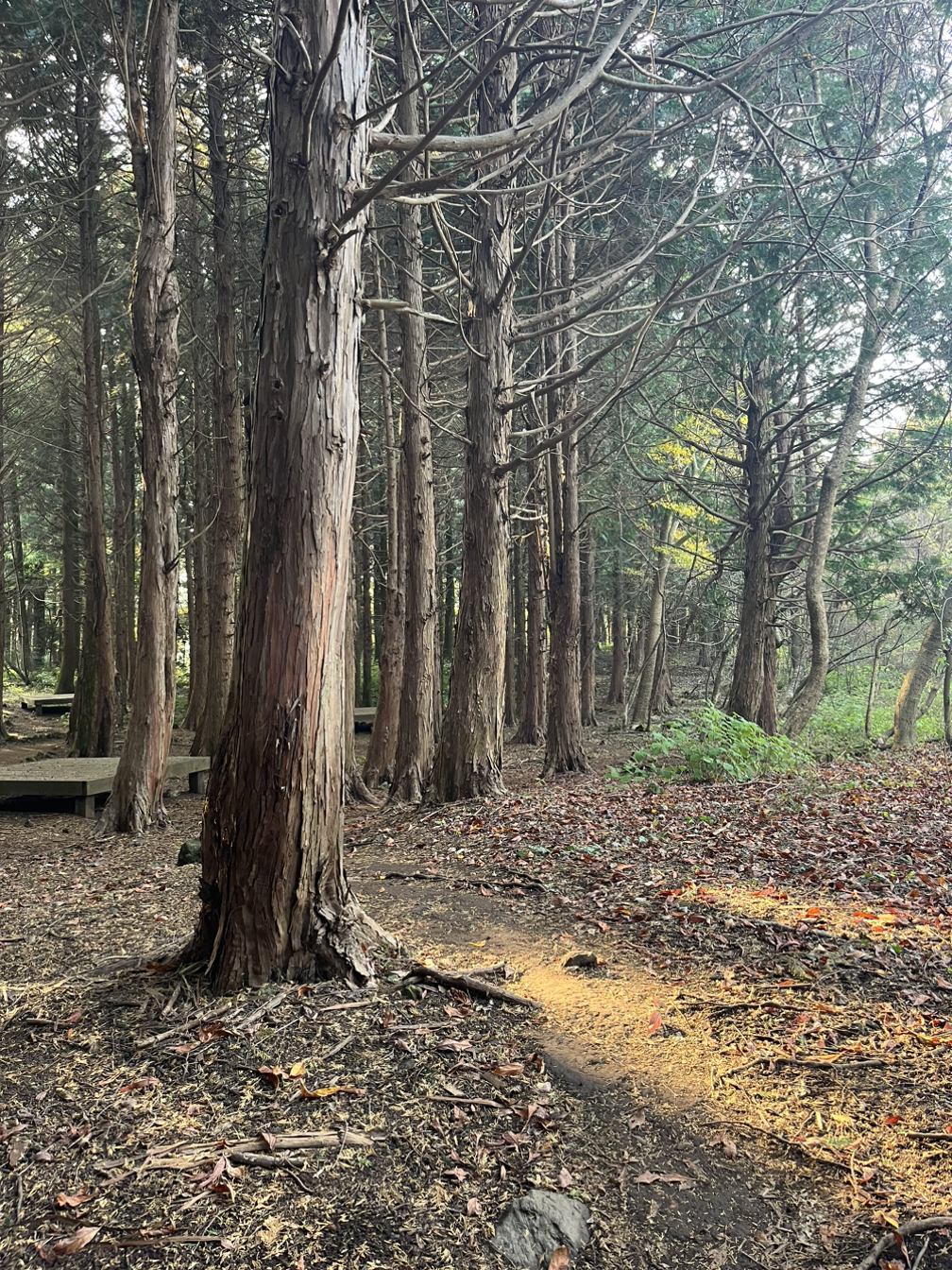 나는 마이클 싱어의 책을 읽다가 문득 나도 작은 숲을 갖게 되면 참 좋겠다는 상상에 빠진 적이 있는데, 마침내 정원과 같은 이 작은 편백숲을 발견해서 기뻤다. 소산오름은 편백의 향이 가득하고, 바닥에는 까만 제주 흙으로 덮여 있는 아늑한 곳이다. 나는 이곳의 느낌이 좋아 매일 찾아갔고, 이 숲이 주는 편안함 덕분에 다녀오면 늘 기분이 좋았다.