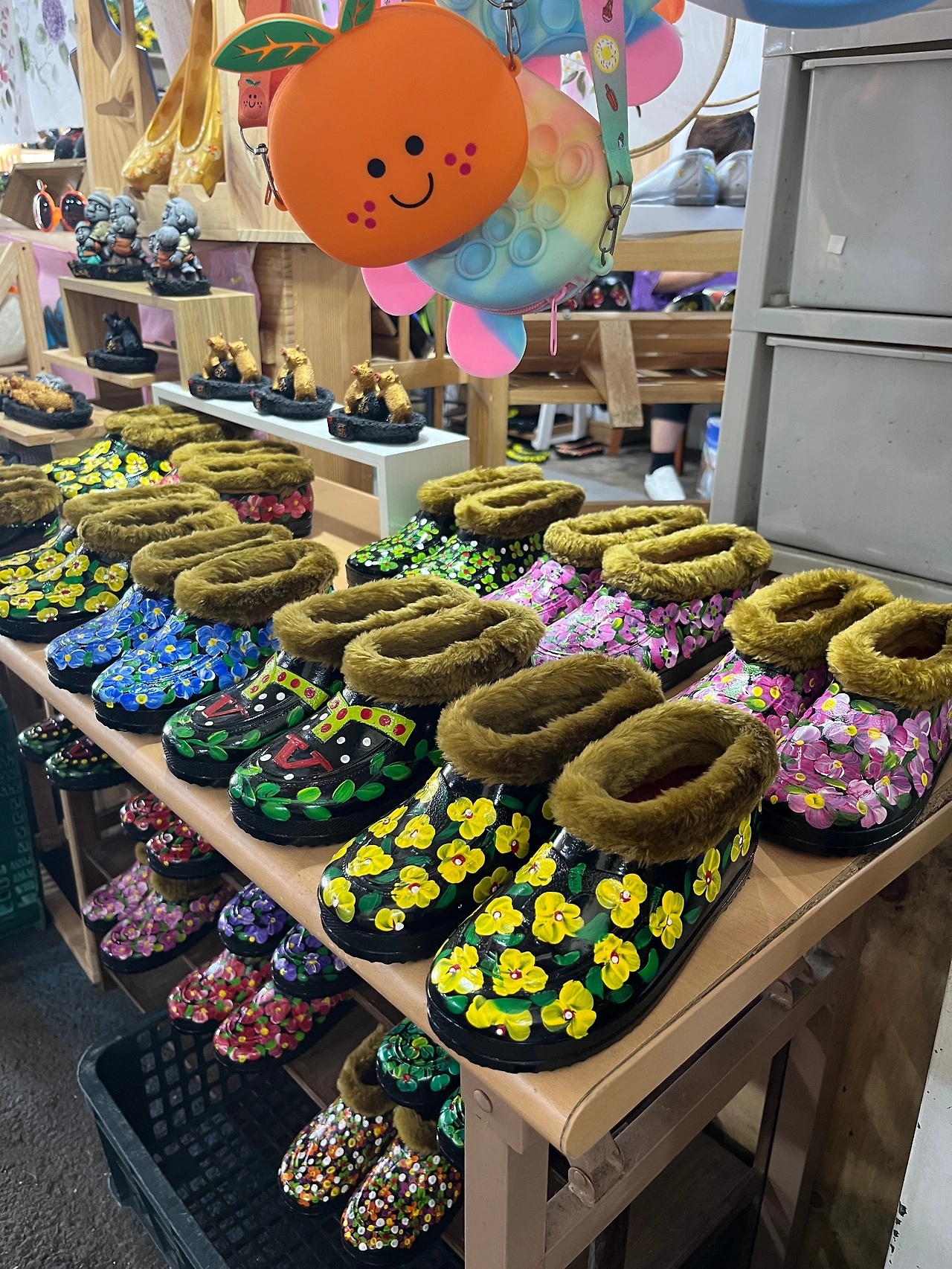 매대에 나와 있는 모든 고무신에 노란 꽃, 빨간 꽃, 파란 꽃이 그려져 있었다. 아이용과 어른용이 있었고, 하절기용 고무신과 동절기용 털고무신이 있었다. 나는 너무 특이하고 귀여워서 이건 정말 희귀아이템으로 소장 각이라고 생각했다.