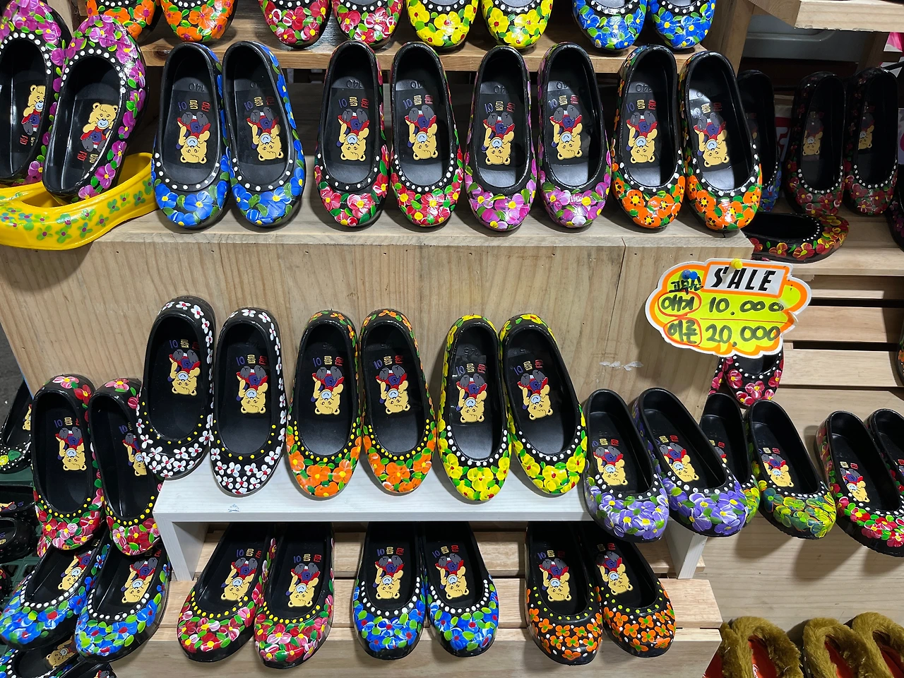 매대에 나와 있는 모든 고무신에 노란 꽃, 빨간 꽃, 파란 꽃이 그려져 있었다. 아이용과 어른용이 있었고, 하절기용 고무신과 동절기용 털고무신이 있었다. 나는 너무 특이하고 귀여워서 이건 정말 희귀 아이템으로 소장 각이라고 생각했다.