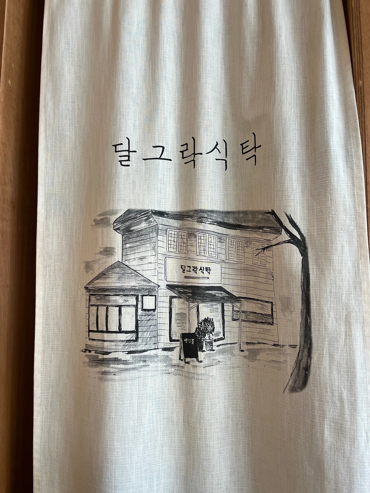 언니가 가리킨 벽을 보니, 하얀 천에 그림이 그려져 있었다. 나는 일단 사진을 찍었다. 나중에 포털 사이트 검색으로 알게 되었는데, 그 그림이 예전 함덕에 있을 때 매장 전경이라고 했다.