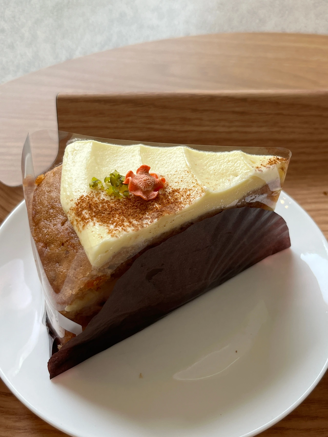 나는 당근 케이크 위쪽에 꽃 모양으로 장식되어 있는 말린 당근도 먹어보았다. 아주 작은 장식이었는데 보통의 당근케이크에는 당근 모양으로 크림이 올려져 있는데, 진짜 당근으로 꽃처럼 장식되어 있어서 맛이 너무 궁금했다. 한번 먹어보니 작은 당근 맛은 쫄깃하니 달콤했다.
