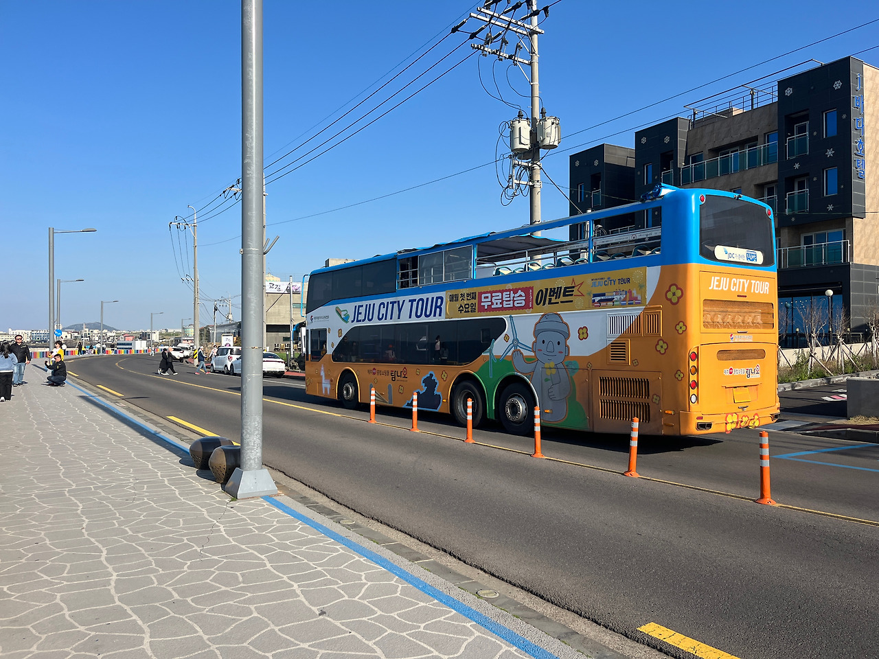 이야기를 나누다 문득 고개를 들어보니 눈앞에 ‘제주투어버스’가 지나갔다.