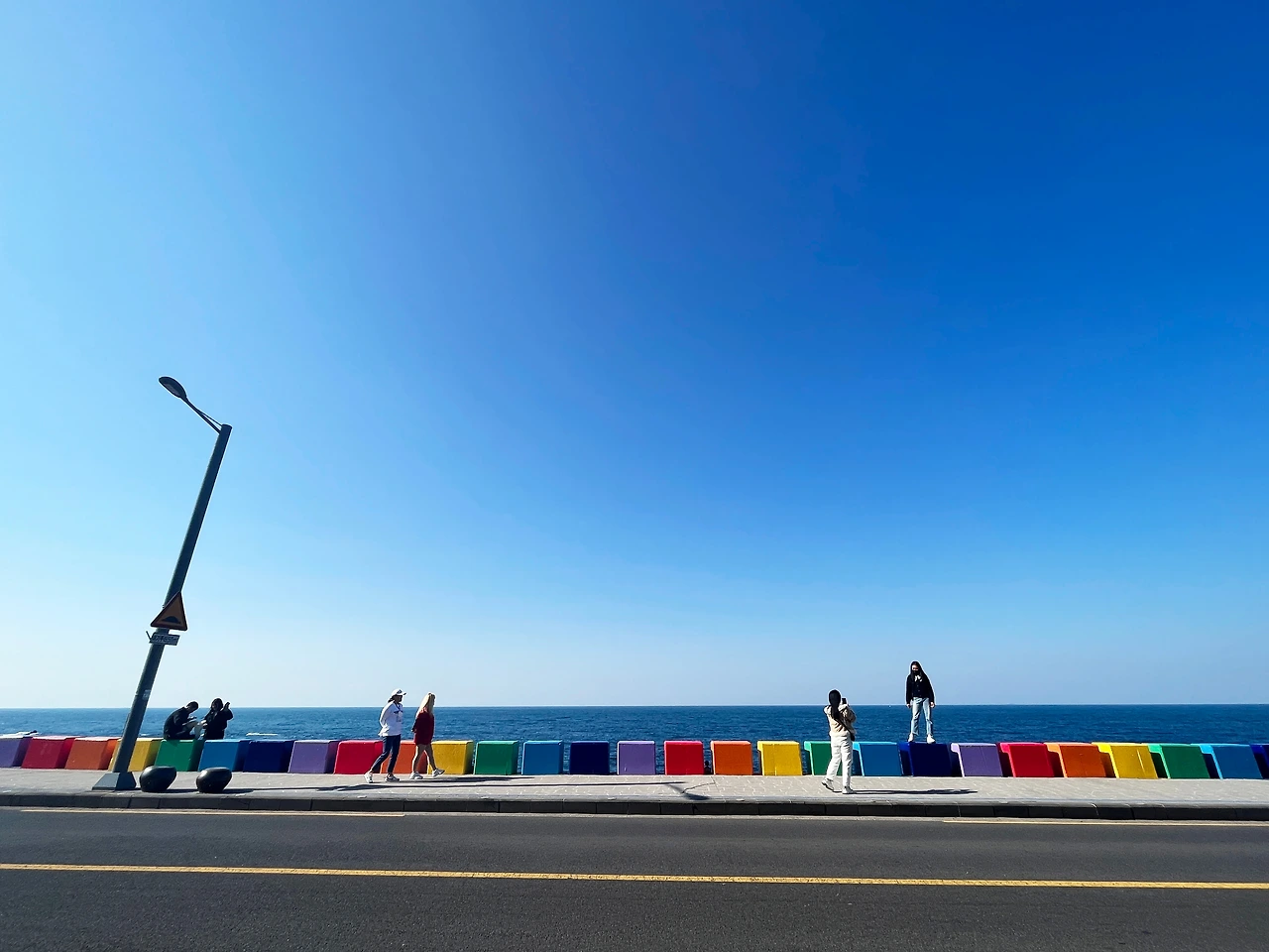 나는 무지개 해안이 걷기 좋다는 말에 <도두봉에서 만난 이>와 함께 해안 쪽으로 나왔다. 들은 대로 무지개 해안은 바다를 보며 걷기에 좋았고, 주변에 카페와 식당이 많아 잠시 쉬어가도 좋은 곳 이었다. 나는 오늘 <도두봉에서 만난 이>에게 커피를 대접하면 좋을 것 같았지만 시간이 별로 없어서 카페에 들어가지는 못하고 아쉬운 대로 길가 테이크아웃 커피점에서 커피를 사서 드렸다.