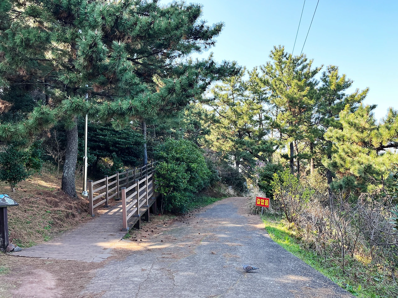 “네. 알지요. 저기 아래쪽으로 내려가서 도두봉 표지판에서 왼쪽으로 돌아가면 있어요.”