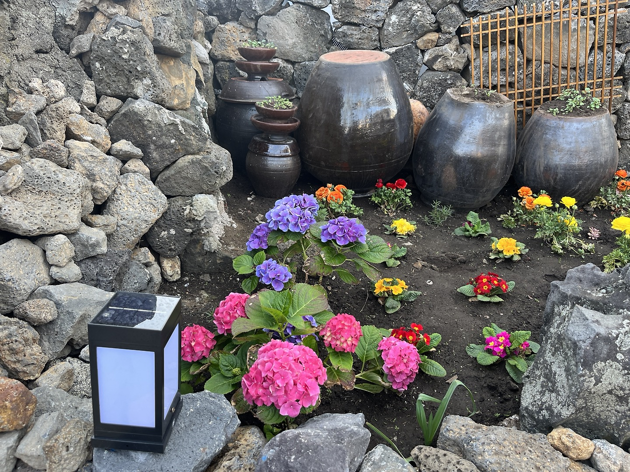 펜션 한 켠 작은 화단에는 수국이 심겨 있었는데 민주가 꽃도 고르고 직접 심었다고 했다. 곧 여름이 되면 수국은 탐스럽게 필 예정이었고 제주의 새까만 흙과 핑크와 보라색 수국들이 어우러져 예쁜 분위기를 풍겼다. 아마 여름에 또 펜션에 오게 되면 마당 가득 수국이 핀 모습을 볼 수 있을지도 모르겠다.
