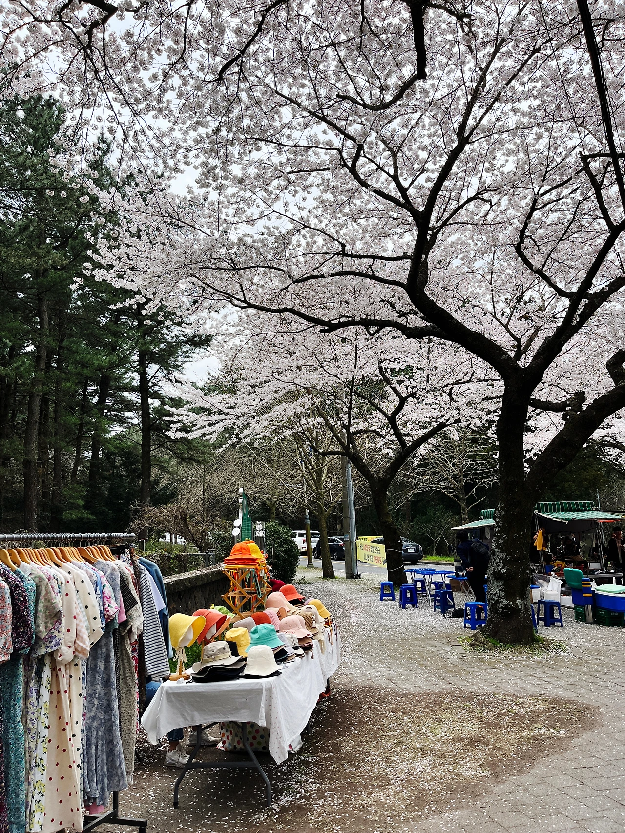 벚꽃이 만개하면 푸드 트럭이나 이런저런 물건을 파는 사람들로 작은 마켓이 열린다. 제주대학교 벚꽃길은 넓고 크고 긴 편이라 이편에서 저편으로 크게 한 바퀴 돌면 다양한 물건을 파는 사람들을 구경하는 재미가 쏠쏠하다.