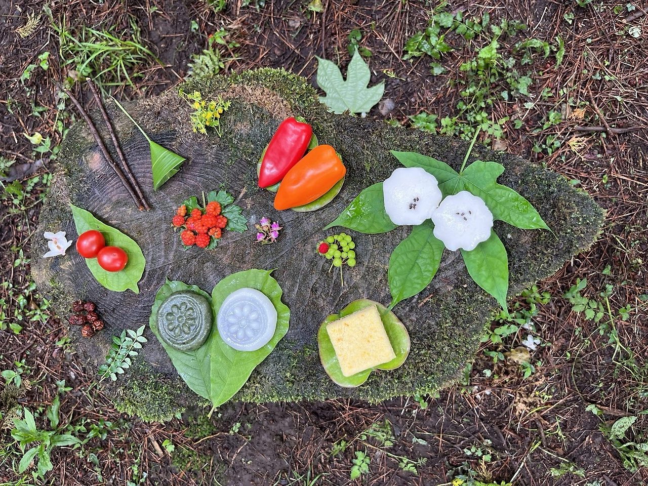 나뭇잎에 올리니, 떡의 전통 무늬와 예쁘게 잘 어울렸고, 떡도 더 맛있게 보였다. 주변은 갑자기 안개가 자욱하게 끼면서 비현실적인 분위기를 풍기기 시작했다. 우리는 작가님이 미리 준비해 오신 작은 의자에 앉아 우리만의 파티를 즐겼다. 우리는 별다른 말 없이 조용히 음식을 먹었고, 특별히 말을 하지 않아도 마음이 통한다는 게 뭔지 알게 되는 시간을 보냈다.