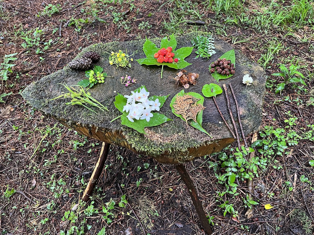 나는 숲에서 소꿉놀이를 해본 적이 없어 어떤 것을 놓으면 좋을지 몰라 조금 난감했다. 내가 어린시절 해봤던 소꼽놀이는 진흙, 모래, 자갈 이런 걸로 많이 했었는데...