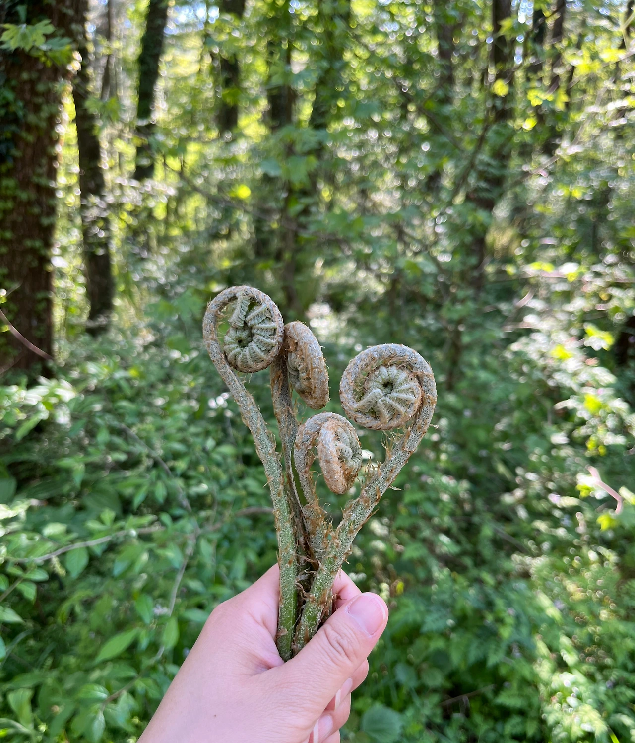 나는 어렵사리 발견한 고사리 사진을 잘 찍어 보기 위해 많은 노력을 기울였다. 하지만 고사리가 너무 얇아서 내 핸드폰이 초점을 잘 잡지 못했다.