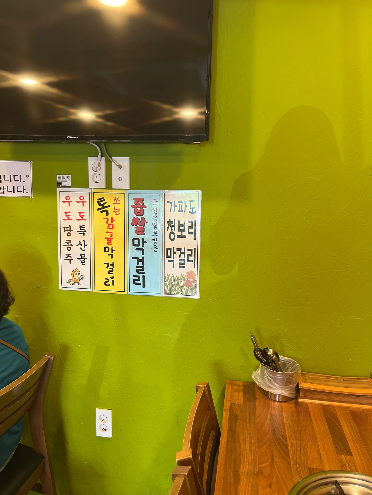 벽에는 '가파도 청보리 막걸리', '좁쌀 막걸리', '톡 쏘는 감귤 막걸리', '우도 땅콩주'라는 메뉴판이 붙어 있었는데, 나는 술은 마시지 않지만 이런 날 '우도 땅콩주'를 마시면 정말 잘 어울릴 것 같다. '감귤 막걸리'의 맛도 궁금하고...