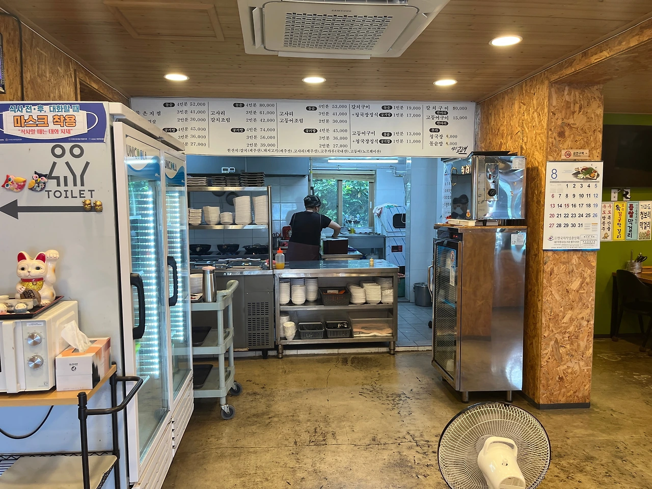 아들로 보이는 건장한 남자분이 우리를 식당 안쪽 창가 옆 좌석으로 안내했다. 식당 안쪽은 생각보다 넓었고, 4인용 테이블 6개 정도가 놓여 있었다. 점심시간이 되었지만, 사람은 그리 많지 않아 우리는 편안하게 자리 잡을 수 있었다.