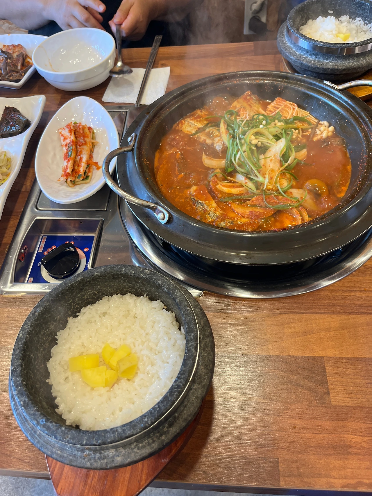 우리보다 먼저 와있던 창가 좌석의 사람들은 대화하면서 천천히 음식을 먹었다. 아무래도 조림에 돌솥밥이 뜨겁다 보니 빨리 먹을 수 있는 음식을 아니고 가족들의 분위기가 좋아 대화하면서 먹고 있는 것 같았는데, 나는 이렇게 천천히 음식을 먹을 수 있는 게 진정한 한식의 묘미가 아닌가 생각했다.