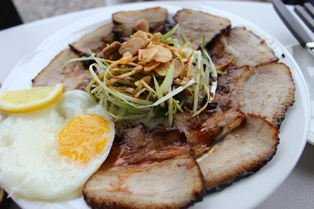 차슈덮밥은 안의 고기를 잘라서 밥과 양념과 잘 섞어먹어야 해요.