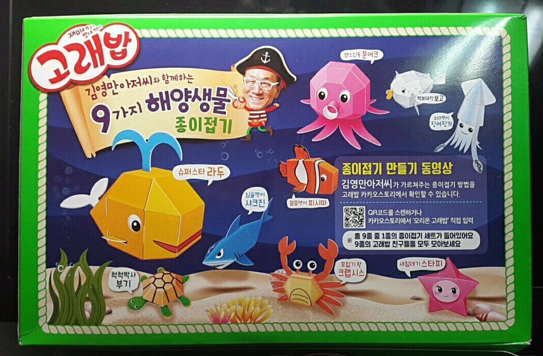 알고 보니 9개의 캐릭터가 있는데 운이 좋은 건지 메인 캐릭터인 고래 '라두'가 나왔다. 평소 같으면 손재주가 좋은 친누나에게 만들어달라고 줬겠지만 괜한 흥미가 생겨 직접 만들어봤다. 낑낑대고 있었는데, 종이접기로 유명한 김영만 영맨 아재의 설명 동영상 링크가 있길래 들어가서 보면서 했다. 별로 도움은 안됐다.