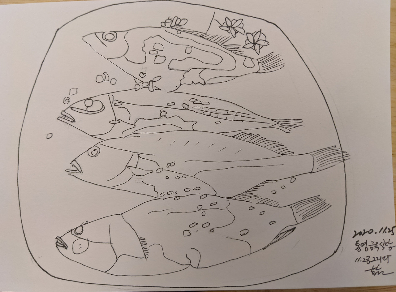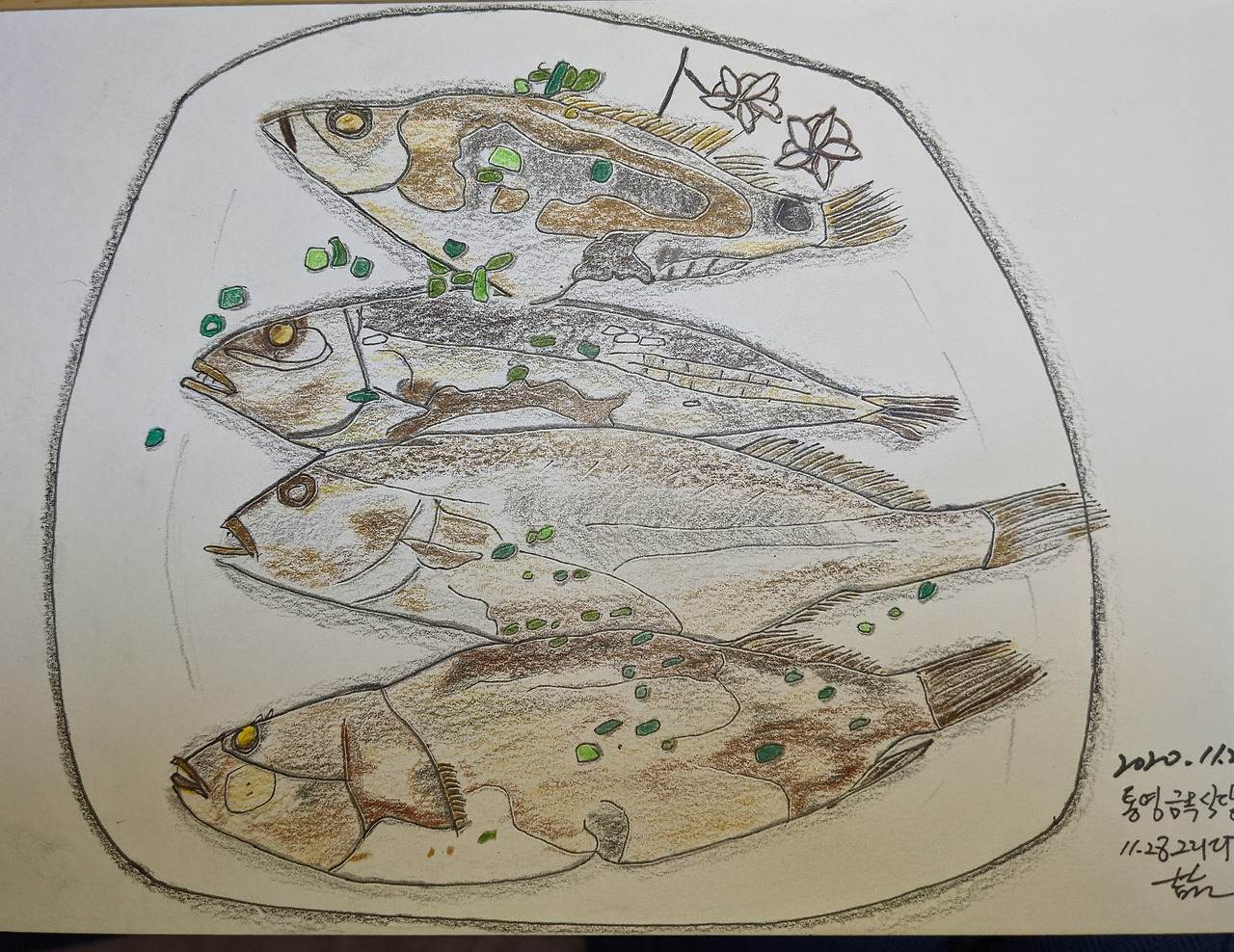 미역국을 먹으며 코안 가득 맛난 향을 가득 채운 생선 몇 놈들과