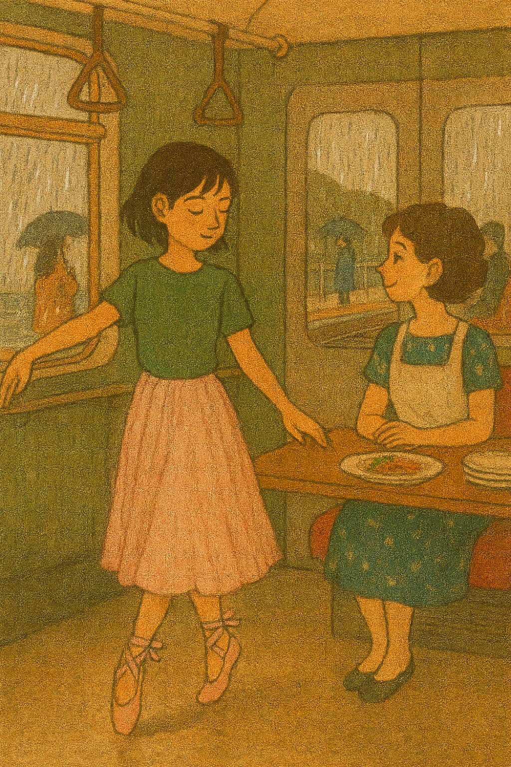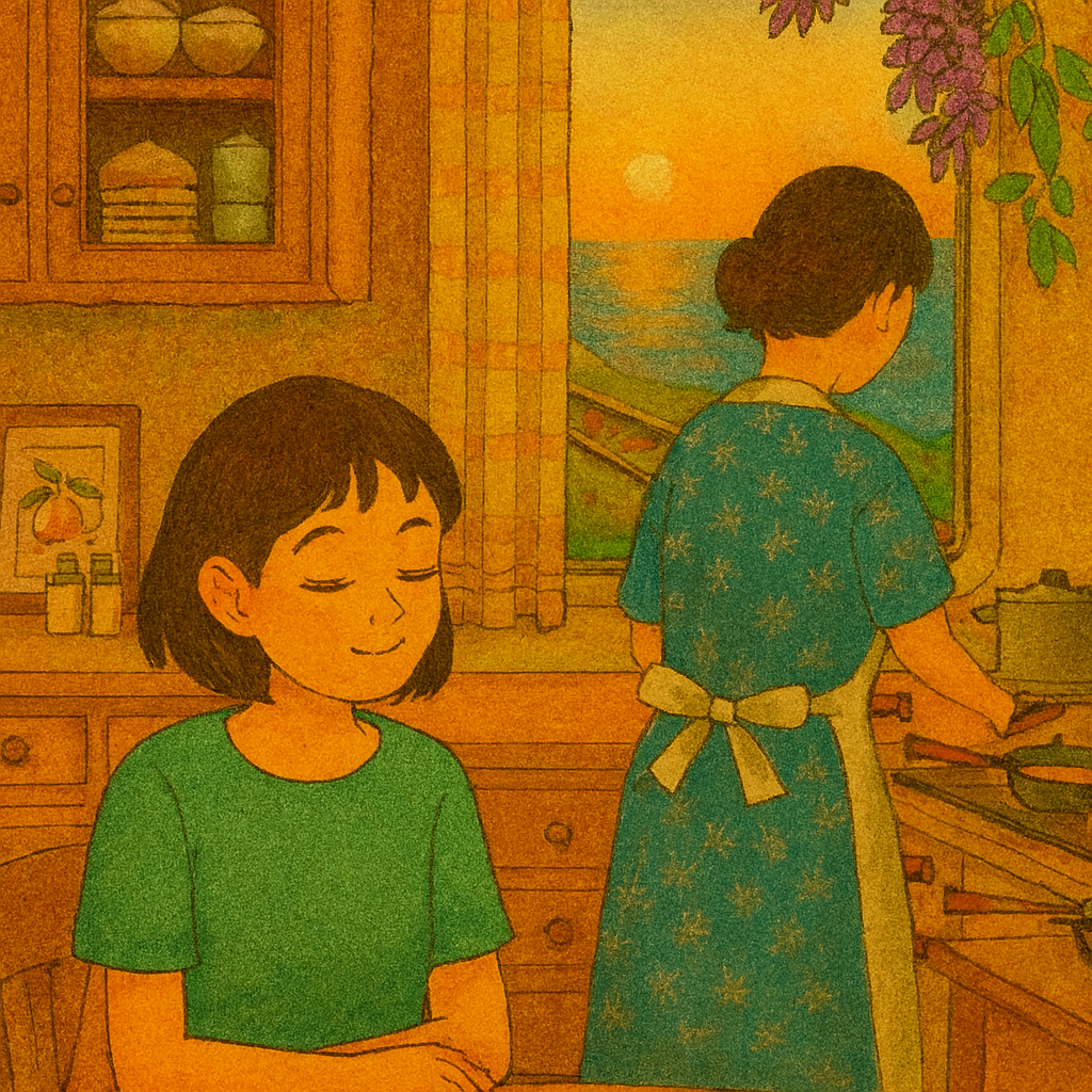나는 긴 좌석에서 일어나서 다음 칸으로 가면서, 어느 규칙적인 소리에 유년 시절의 무해하고 선선한 아침을 떠올리죠. 바로, 엄마의 경쾌한 도마질 소리.