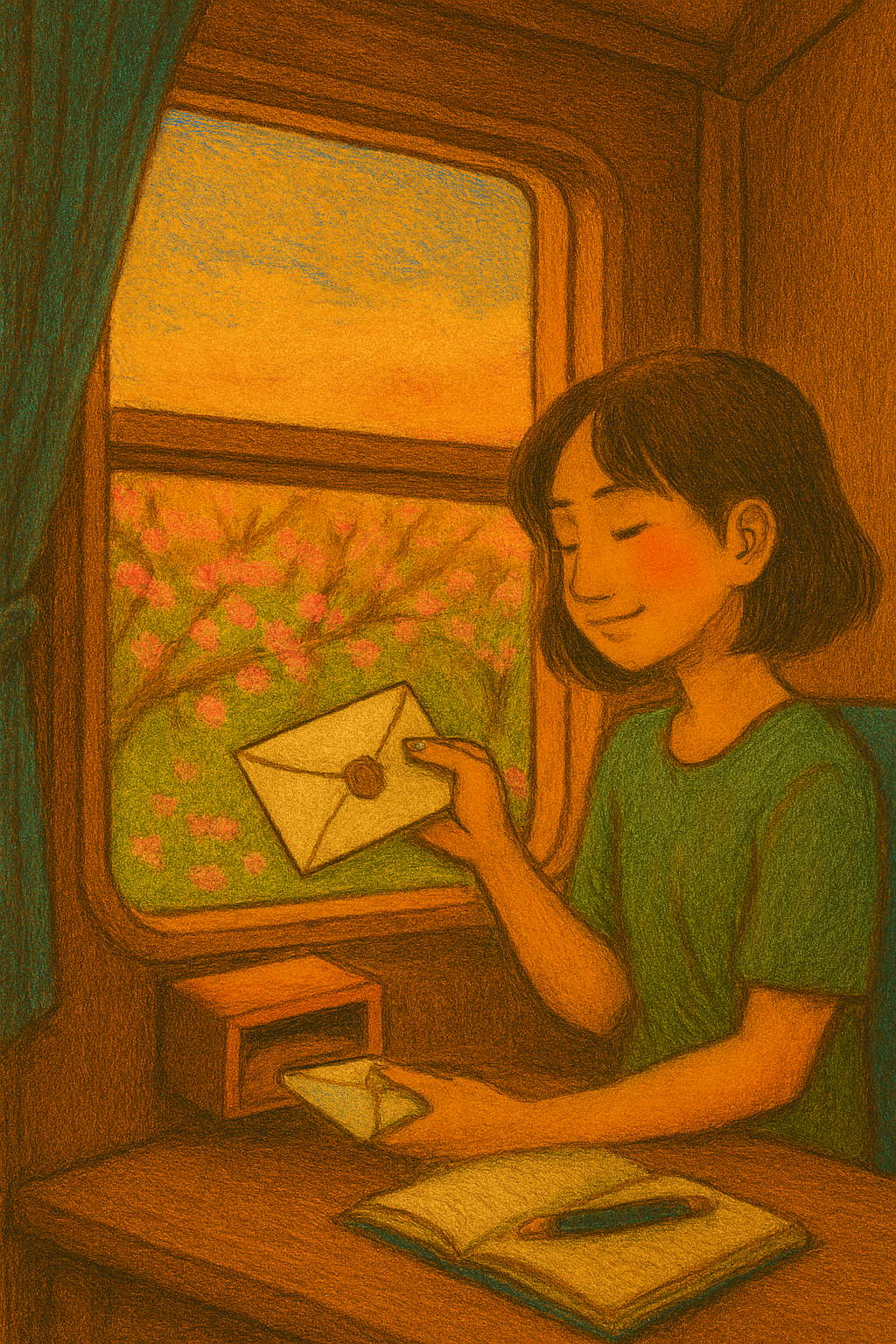 나는 곱게 접은 편지를 봉투에 넣어, 열차 밖으로 연결된 시간의 편지함을 달그락 열어 그 속으로 쏙 집어넣지요.
