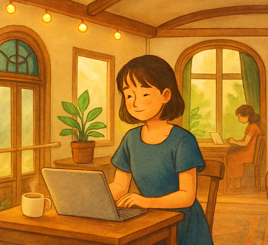 거기서 커피 한 잔이나 매일 기대감으로 열어보는 도시락을 먹으면서 이야기를 나눌 동료도 너무 멀지 않은 자리에서 자기만의 작업을 즐겁게 하고 있어요.