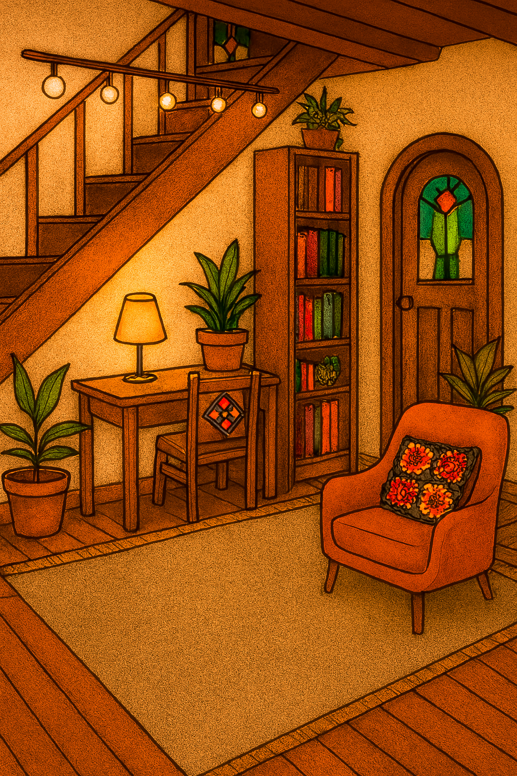 벽에는 선반을 달고, 바닥에는 양탄자를 깔고, 창가 쪽에는 기대어 쉴 수 있는 암체어도 놓을 거예요.