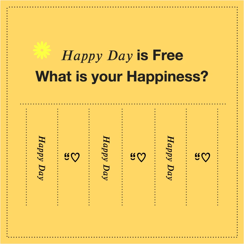 여기에 쓰인 것은 색을 제외하면 글과 선이 전부입니다. 읽는 사람들에게 주고 싶은 것을 그냥 주는 겁니다. 저는 여기서 (밝은 색의 바탕에) 미소와 행복한 날을 주고 싶었습니다. ‘행복이 무엇인가요?’라는 질문으로 잠시나마 읽는 사람들, 개개인이 소유한 행복을 상기시켜 주고 싶었습니다.