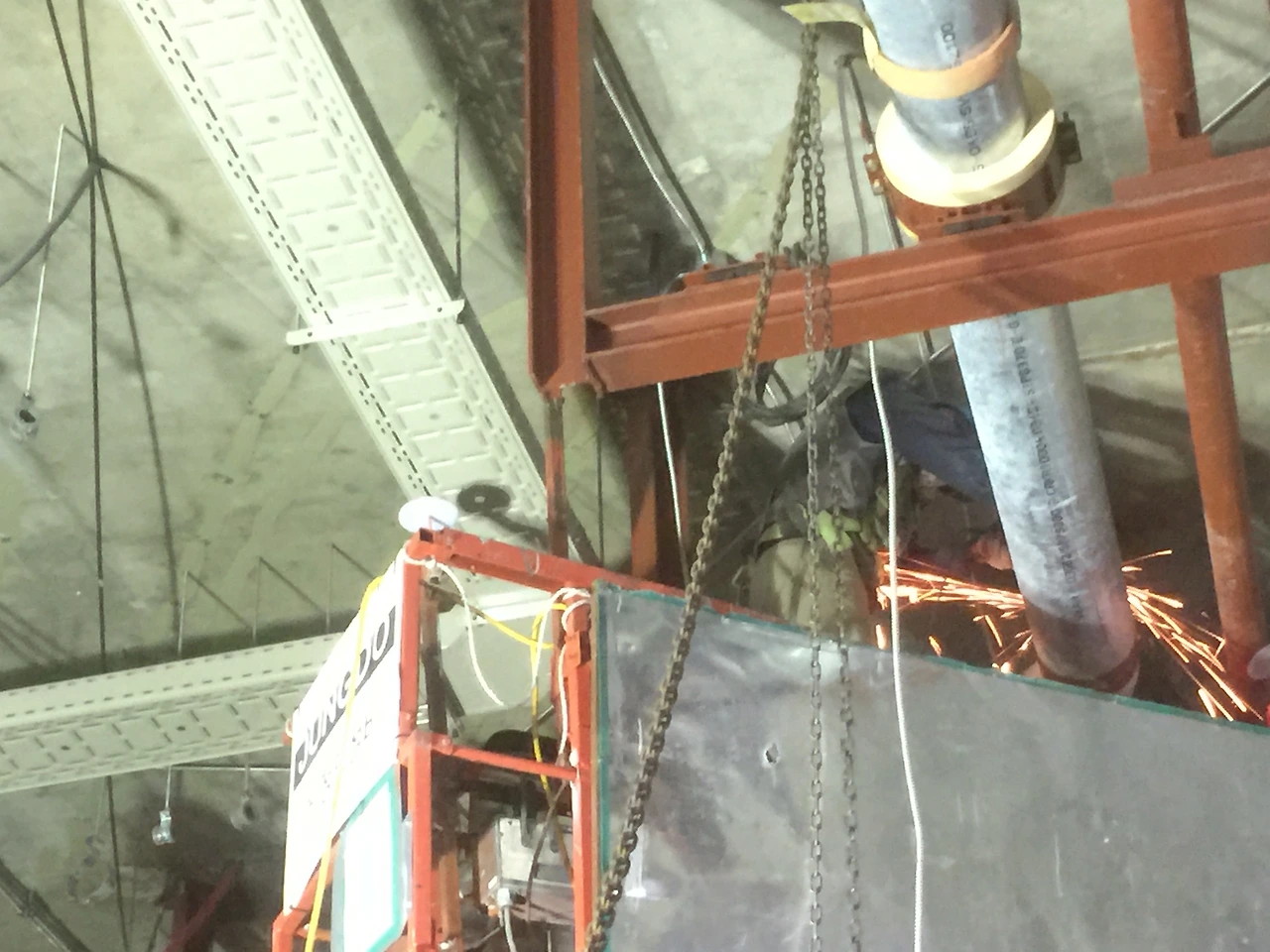 오늘은 미리 상부에 체인블럭(쇠사슬로 된 철제 도르레로 중량물을 운반하거나 들어올리기 위해 사용)을 걸고 씰링바(견인용 밧줄)로 파이프를 단단하게 고정한후 작업을 하였습니다. 그렇지만 워낙에 무거운 큰 파이프라 긴장하면서 작업을 해야했습니다.